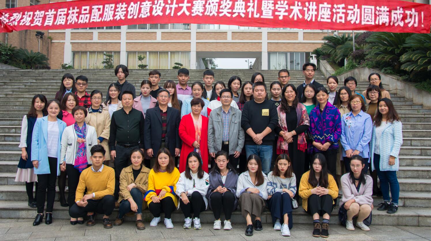 莎丽袜业领导、易兵副校长、学院领导、专业教师与获奖设计师们的合影