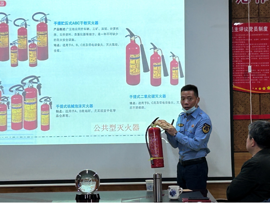 彭建龙教官为大家讲解了基本消防安全制度及消防知识,并结合实际案例,生动讲解了火灾发生的原因、怎样预防火灾、火灾发生时自救方法、火场逃生等相关知识。同时,他还介绍了常规消防器材的使用方法,现场演示了报警器、干粉灭火器、便携式灭火器、车辆安全逃生锤的正确使用方法,使麻豆官网