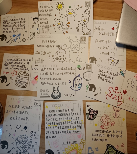 师生通过致信、祝福卡片、加油视频为考研冲刺的学子送去温暖,助力麻豆官网