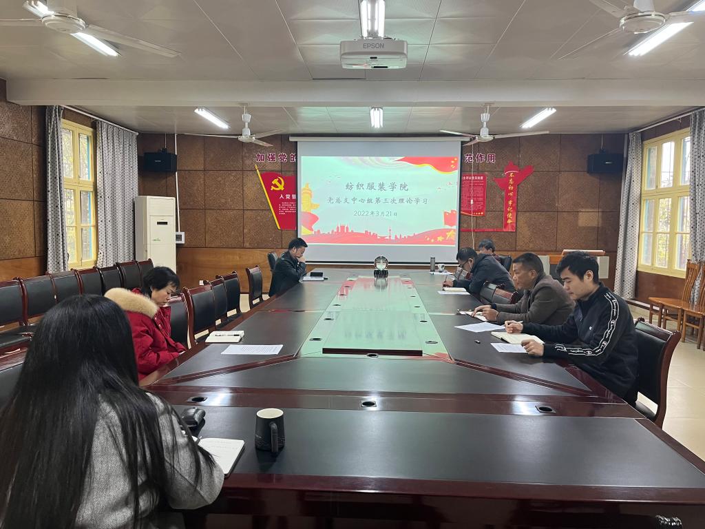 党总支在电教楼201会议室召开党总支理论学习中心组学习会,专题学习习近平总书记在2022年春季学期中央党校(国家行政学院)中青年干部培训班开班式上的重要讲话精神、全国“两会”精神以及“两会”期间习近平总书记重要讲话精神。党总支书记李爱国主持会议,全体党总支成员参会学习,副院长陈晓玲列席会议。