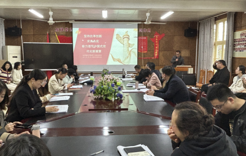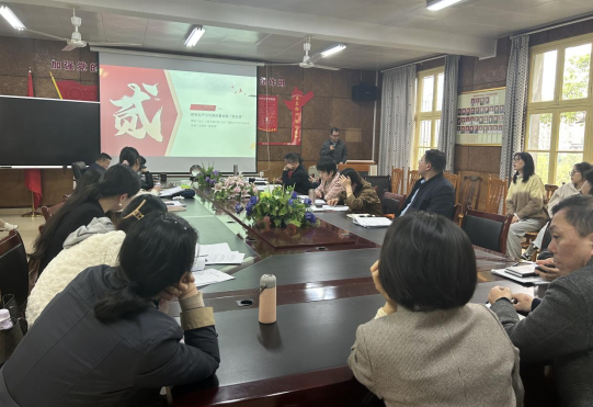 教工党支部在电教楼201会议室开展4月“一月一课一片一实践”主题党日活动。活动围绕“坚持改革创新求真务实 奋力谱写中国式现代化新篇章”主题进行学习研讨,本次活动由教工党支部书记何斌主持,支部全体党员参加。