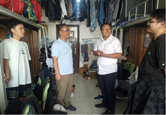 院长何斌带队,全体院领导、辅导员及班主任深入学生宿舍,开展暑期离校安全专项检查,并慰问留校学生,为同学们送去关怀与问候。