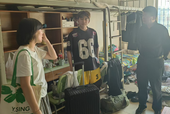在走访暑期留校学生宿舍时,老师们与备战学科竞赛、参与科研项目以及备战考公考研的同学们交流,详细了解他们的学习生活安排和需求,并送上暖心慰问,传递学院关怀。“学院是大家的坚强后盾,遇到困难随时联系值班老师。”李爱国书记特别叮嘱留校学生遵守校园管理规定,注意防暑防疫和人身安全,要求辅导员做好留校学生动态台账,落实"一日一报"制度。