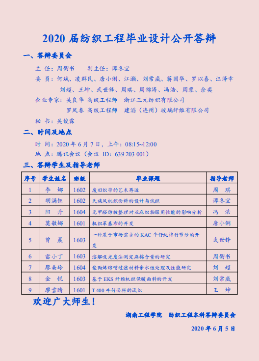 2020届纺织工程毕业设计公开答辩