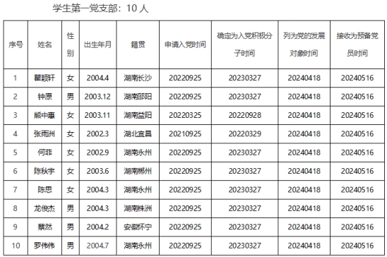 学生党支部将瞿颖轩、张奕等20名同志拟转为中共正式党员,现予公示(详见附件),征求党员、群众和单位的意见。公示期限内,个人和单位均可通过来信、来电、来访等形式,向党支部、学院基层党委或校党委组织部举报反映公示对象在德、能、勤、绩、廉等方面的情况和问题。以个人名义举报反映的应署本人真实姓名和联系方式;以单位名义举报反映的应加盖单位印章。举报反映公示对象的情况和问题必须真实准确,内容尽量具体详细,并尽可能提供有关调查线索。受理单位对举报反映人的情况严格保密。