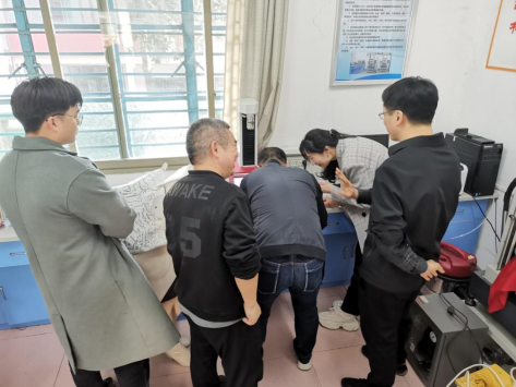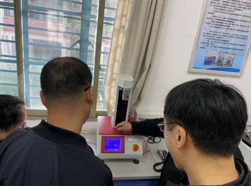 实验中心组织的单纱强力仪和单纤强力仪研究与使用培训在205室举行,解开放、何斌、汪泽幸、罗凤香、解相婧等教师参加培训。来自泉州市美邦仪器有限公司的工程师,围绕设备介绍、软硬件操作、数据处理、分析原理、检测应用等方面,为参训人员详细介绍了单纱强力仪和单纤强力仪的使用方法与设备管理等内容。