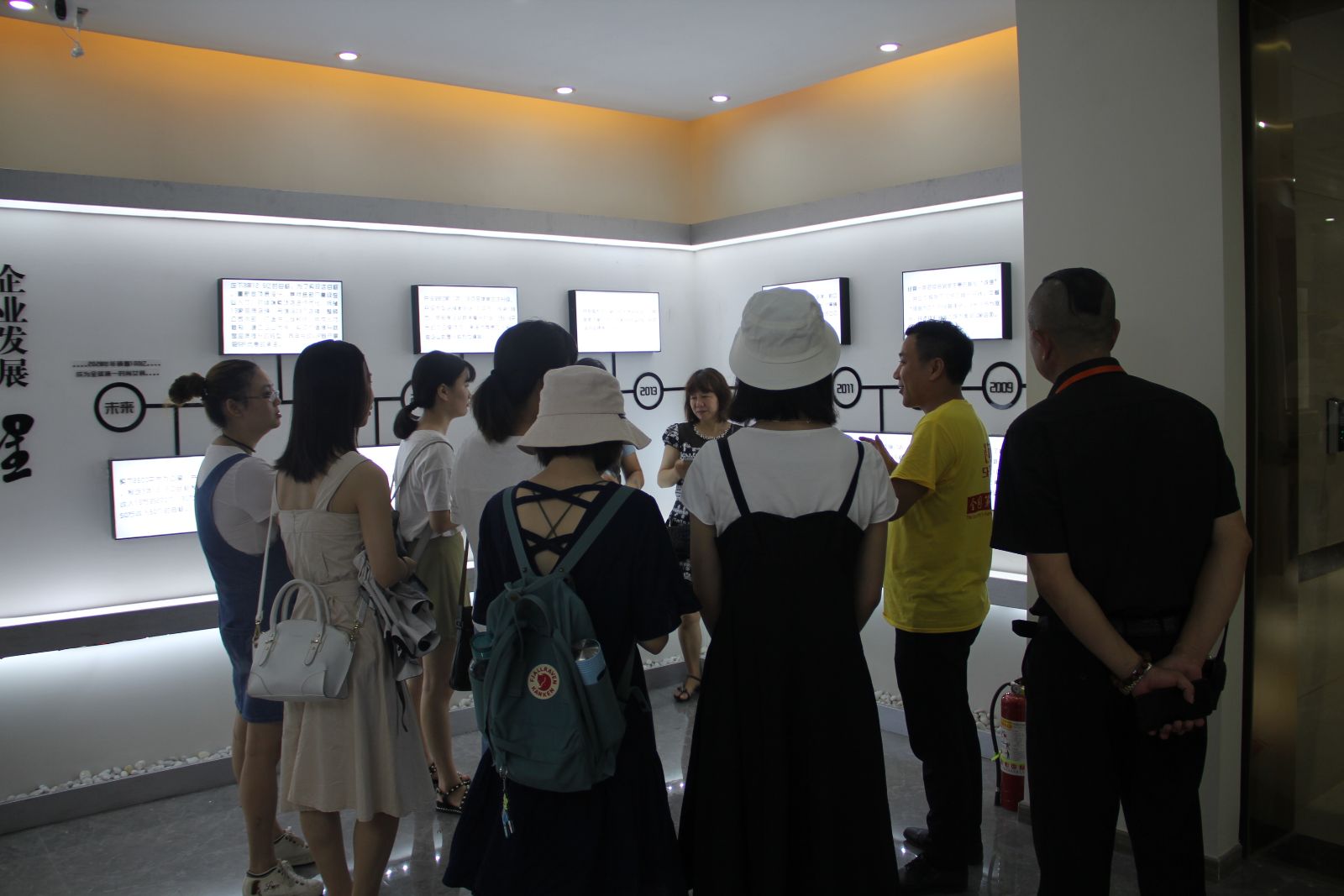 朱治国董事长热情接待了实践团,并为师生们简要介绍了智连创园入驻服装企业的情况,使师生对园区情况有了初步了解。接着,朱总带领参观了湖南智联产融科技集团的服装研发基地以及供应链中心,与企业设计师们进行了沟通交流。下午,实践团一行走进智能车间参观了服装生产配套设施设备,并体验了智联产融旗下奔狐女装品牌体验店的“智能试衣镜”。