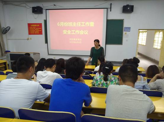 在召开学生干部与学生党员安全工作会议的基础上,进一步召开了6月份班主任工作会议。会议由学院党总支书记黄自力主持,全体班主任及学办辅导员参加会议。