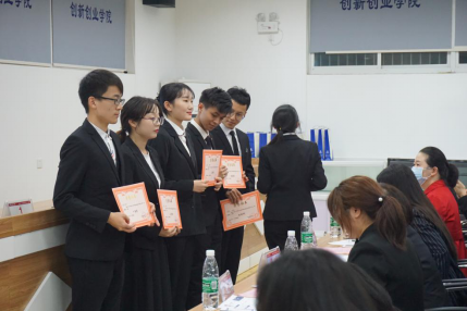 党总支副书记罗荃老师、学生会办公室主任张轶老师、傅静琳老师以及永霏集团领导代表胡战、刘静、蒋王英、张艳。通过大赛的激烈竞争,最终袁辉翔在比赛中脱颖而出,摘得桂冠,推送校级比赛。服设170班的刘蒙丹与服设1802班的姜雪茹分别获二等三等奖。这次活动的成功举办,不仅让大学生了解招聘过程,积累面试经验,同时让同学们认清自身所存在的问题,在以后的学习中更加有目的性的去完善自己。