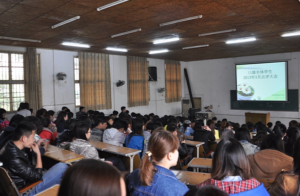 三月点评大会在电教105顺利召开,大会由三个部分组成,3月15日唐星星老师主持大一学生点评会议,3月19日尹湘鹏老师主持大二学生点评会议以及3月21日罗荃老师主持大三学生点评会议。
