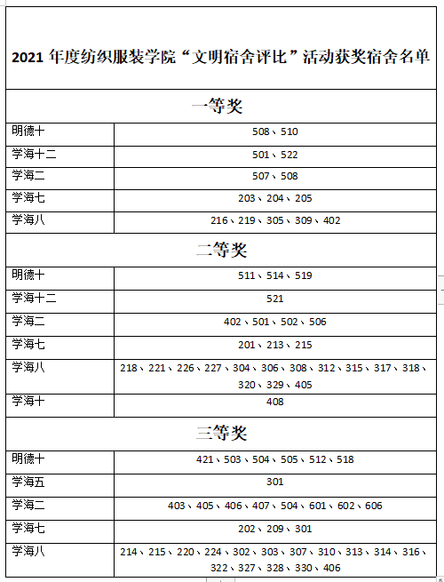 学办傅静琳老师对本次文明宿舍评比活动做出了总结,重点强调宿舍保持干净整洁的重要性,并鼓励大家以后继续保持文明整洁的宿舍环境。本次活动具体名单以及奖品奖励如下: