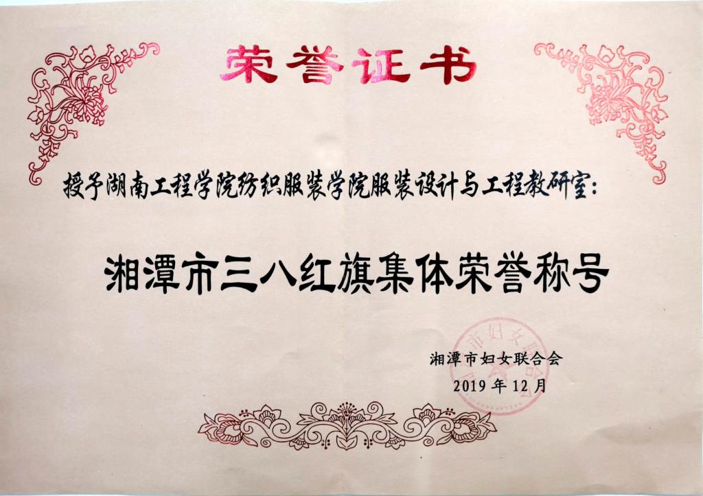 湘潭市妇联为激励先进,选树榜样,进一步引导和激励广大妇女在第一线建功立业,在社会生活和家庭生活中发挥独特作用,开展了选树“三八红旗手”和“三八红旗集体”的决定。麻豆官网 服装设计与工程教研室积极申报,在教学第一线积极开展各项工作并取得了良好的成绩,获得了湘潭市三八红旗集体荣誉称号。