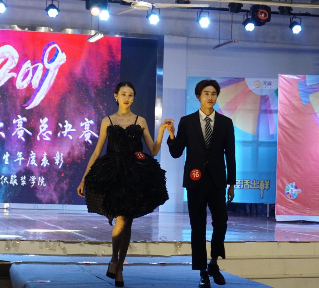 学生的优秀作品上台展示,走秀服装别出心裁,让观众们大饱眼福,之后模特们还进行了才艺表演,向评委和观众展示他们独特的魅力。
