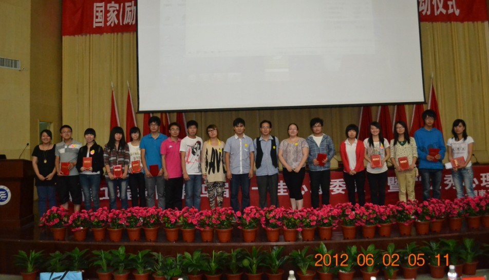 选送的心理委员田萍萍、徐曾参加了该次“十佳”的决赛。经过客观题与主观题两轮比赛的激烈角逐,心理委员田萍萍以自信、精彩的表现赢得了台下评委与观众的掌声与肯定。最后荣获“十佳心理委员”称号。