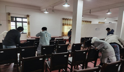 座谈会开始之前学生支部对老年活动中心进行了卫生打扫,随后全体活动学生和活动教师围绕着三老交流学习经历以及认真倾听三位退休教师讲解湖工历史和他们的工作经历,三位退休教师的故事都激励了我们要努力学习专业知识,培养艰苦奋斗精神。