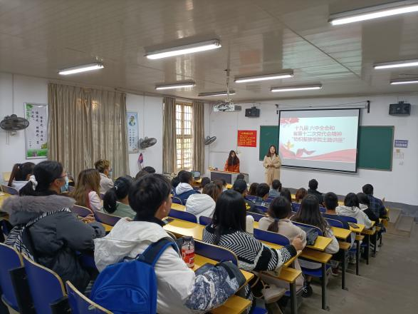 在电教楼101教室组织宣讲“十九届六中全会和省第十二次党代会精神”主题讲座。本次讲座由团总支书记喻亦荣老师主持,参会学习的人员有麻豆官网