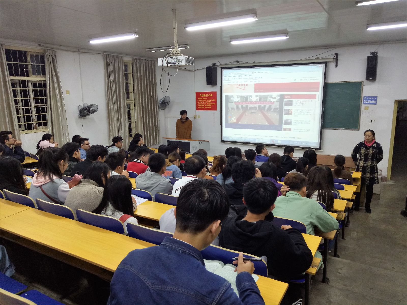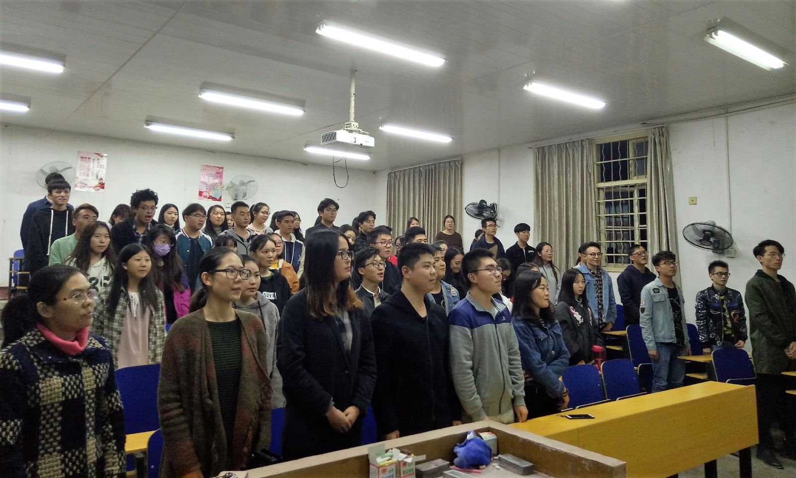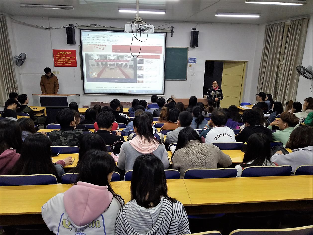 组织学生干部在电教101观看中国共产党的第十九次全国代表大会开幕式。参加学习的有学办主任唐星星、团总支书记黄镜燕、全体学生党员及团学干部。