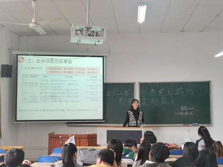 各班班主任参与召开主题班会和诚信宣誓活动,向学生普及个人征信知识,引导学生重视个人征信;开展诚信防诈骗教育,引导学生树立诚信观念、增强法律意识,远离不良贷、套路贷;教育学生在申请贫困生认定、国家助学金等资助项目时,要恪守诚信,如实填报,不辜负国家信任培养。6月初,学院组织助学贷款毕业生及学生代表参与了学校金融知识讲座及诚信承诺签名活动。