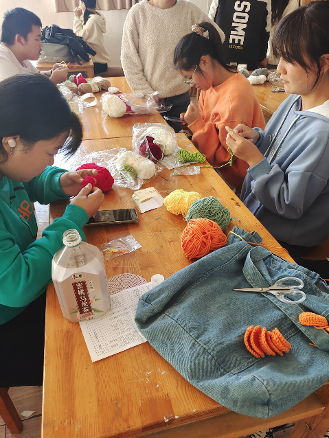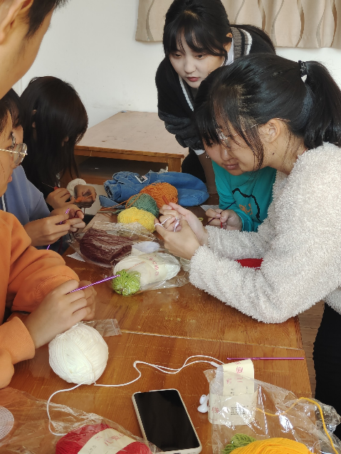 活动邀请学院手工编织能手—杨梅老师教授贫困学生编织技能,既有素质提升,又有专业强化。根据手工钩织的特点,合理安排课时,让同学们在玩中学、学中玩,既能近距离关心学生又丰富了学生们的课余生活。
