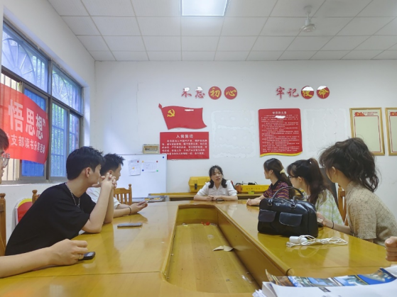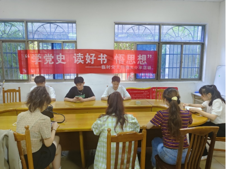开展“学党史,读好书,悟思想”宿舍临时党支部组织的读书分享活动,学生支部书记曹时艳和八名学生党员自愿报名参加。