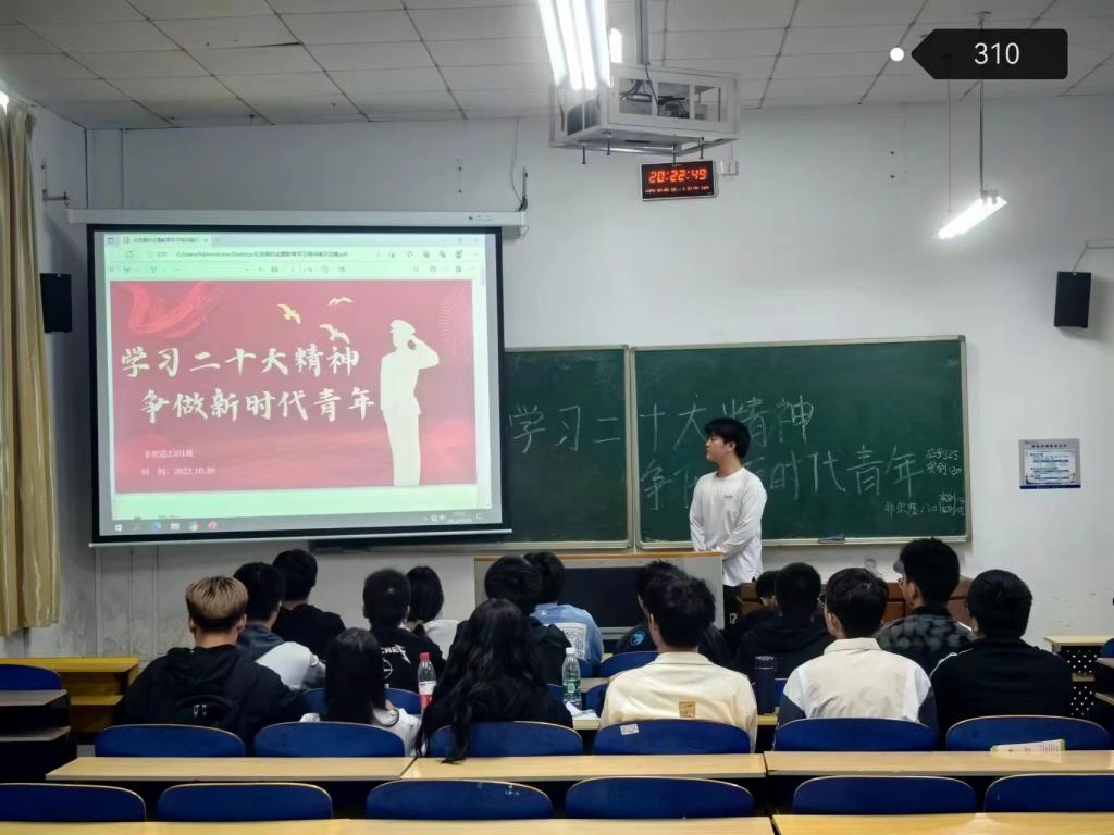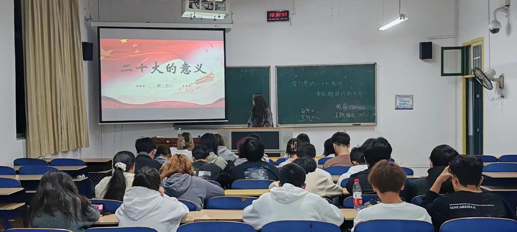于2023年10月20日晚,组织2023级同学于红楼集中开展了“学习二十大精神,争做新时代青年”主题班会。