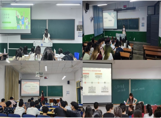 组织大一至大三班级召开“压’励’青春‘力’动未来”心理主题班会,班会由各班心理委员主持。
