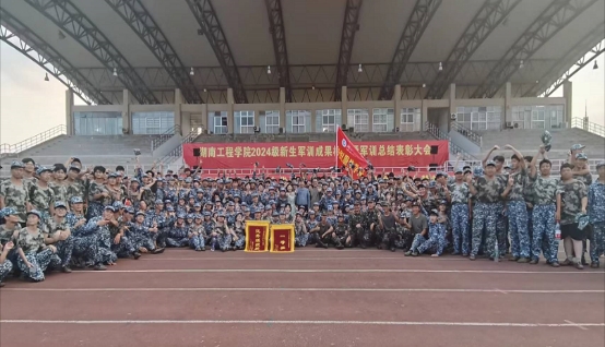2024级新生军训效果检验暨军训总结表彰大会在体育馆田径场隆重举行。