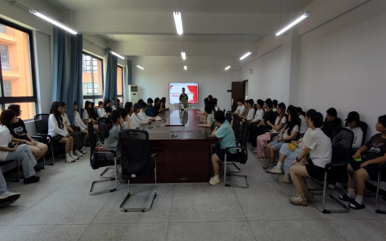 在纺织楼B302会议室召开2025年暑期留校学生安全教育大会,会议由辅导员龚旭昱主持,学院全体暑期留校学生参与此会。