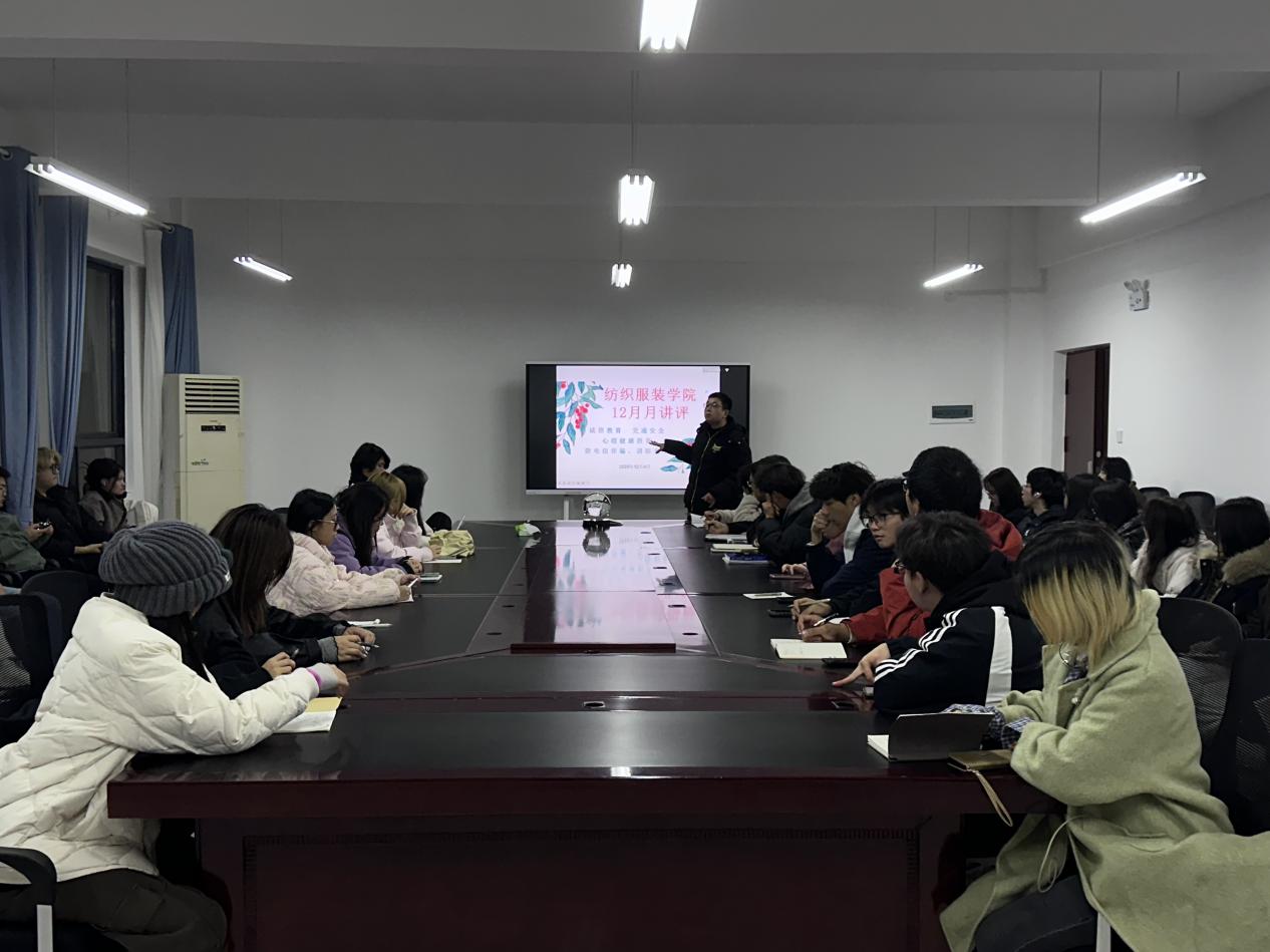 于2025年12月4日晚在纺织楼B302召开十二月份月讲评暨班长会议。会议由辅导员龚旭昱主持,院全体辅导员及全院各班班长参加。会议聚焦11月工作总结、12月工作部署,旨在强化班级管理,筑牢安全防线。