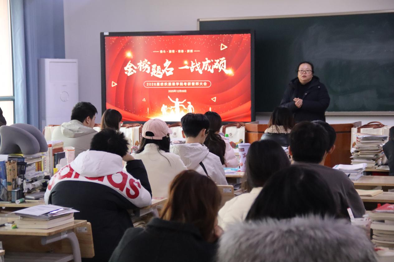 纺织楼A201教室洋溢着温馨而昂扬的气氛。在全国硕士研究生招生考试临近之际,学院党总支副书记赵玲令、辅导员袁微微与备战考研的同学们相聚一堂,开展了一场简朴而真挚的动员交流活动,为同学们冲刺阶段的复习注入信心与力量。
