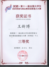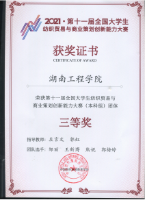 与上海远恒专修学院承办,上海市社会信用促进中心、上海市信用领域(社会信用服务)大数据联合创新实验室协办的第十一届全国大学生纺织贸易与商业策划创新能力大赛已于2021年11月24日结束。