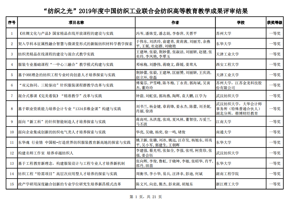周衡书教授牵头申报的纺织工程“特需项目”高层次应用型人才培养的探索与实践、左双喜老师牵头申报的基于“多元融合”理念的服装与服饰设计专业课程体系改革与实践项目分别获得一等奖、三等奖,今年的一等奖共26项,学院级院校总共只获得3项,其余全为大学级学校获得,这是自2013年以来时隔6年麻豆官网
