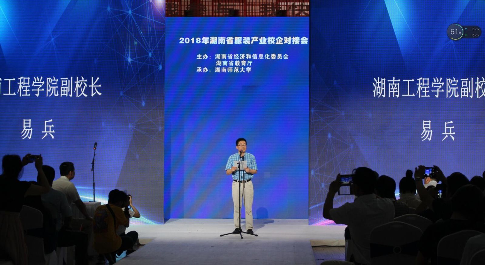 易兵副校长在本次服装产业校企对接会上代表湖南服装类高校做重点发言,他指出将继续发挥高校的人才培养和科学研究的优势,把办学思路真正转到服务湖南地方经济社会发展上来,转到产教融合校企合作上来,转到切实培养工程应用型人才上来,转到增强学生就业创业能力上来,全面提高学校服务区域经济社会发展和创新驱动发展的能力。
