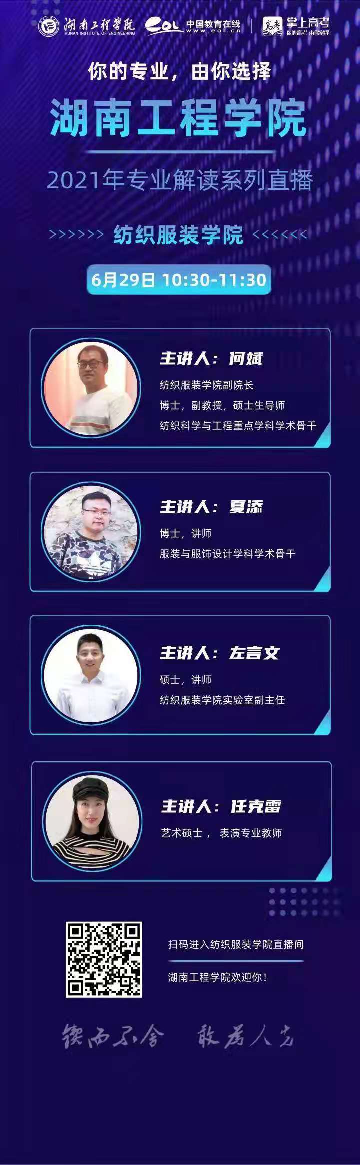 、中国教育在线网和掌上高考平台共同举办的专业解读系列直播。何斌副院长、各教研室主任、三位专业教师:夏添、左言文、任克雷参与本次直播的主讲和专业答疑。