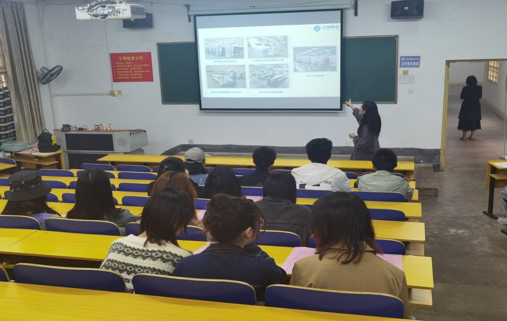 2021年03月31日下午16:00,我们在学院北苑电教楼101迎来了湖南云锦集团股份有限公司的宣讲会,在校纺织工程17级毕业生参加,此次宣讲会旨在帮助学生了解行业需求、提高行业认识,并提供高质量的就业岗位。