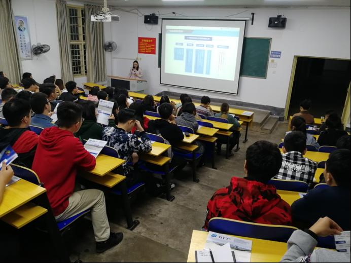 2018年11月5日晚上19:00,广州检验检测认证集团有限公司(广检集团)在电教101准时召开2018届校园招聘宣讲会。参加这次招聘宣讲会的有广检集团戴副院长、招聘负责人以及麻豆官网