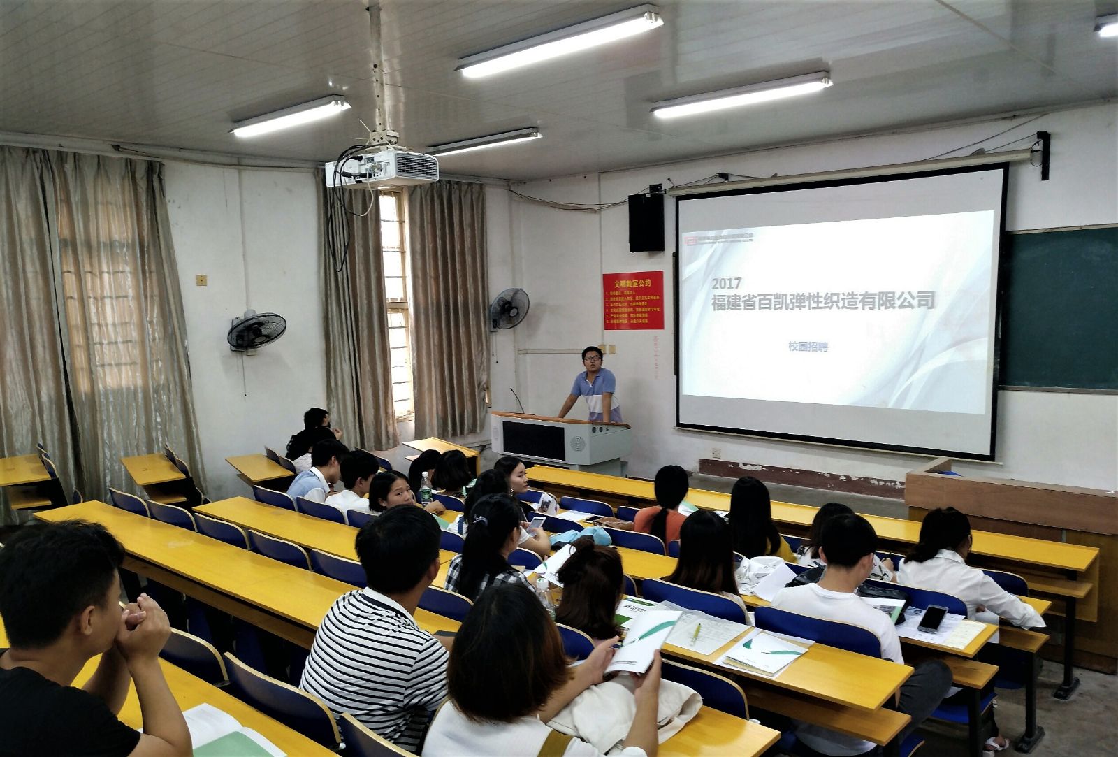 10月10日下午2:00,福建省百凯弹性织造有限公司校园宣讲会在电教101如期举行。麻豆官网