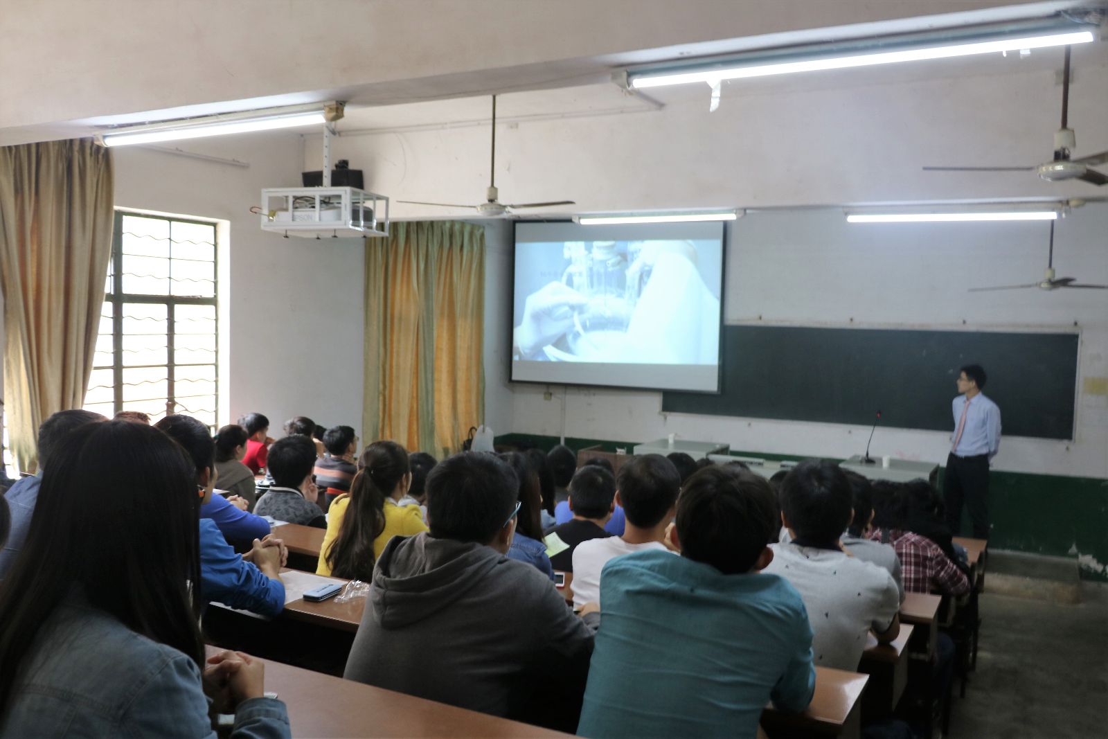 会议初期,主讲人就公司的地理位置、硬实力和软实力、公司的发展史以及公司目前的状况做了详细的介绍,指出广东壕鑫实业有限公司是专业从事高档化纤弹性面料设计、研发、生产、销售的现代化纺织印染企业。其中他着重提出关于公司的未来规划以及发展前景,并就毕业生最关注的薪酬、职称、补贴等方面介绍。紧接着,就是同学们的提问环节,在此过程中,主讲人就员工在公司的生活环境以及人才培养计划展开了详细的讲解,公司始终坚持“以人为本”的理念,并强调勤奋对成功的重要作用。最后,有意向的同学向该公司投递了简历,并与壕鑫实业有限公司的主要负责人进行了面对面交流。