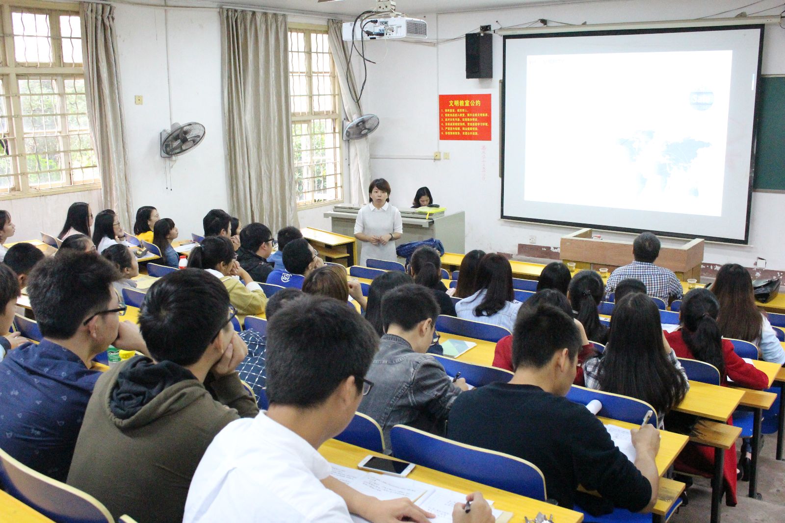 宣讲会由北江公司人力资源部负责人主讲。大会伊始,主讲人通过PPT简要介绍了北江公司的创始时间、公司规模、公司概况以及发展历程,主讲人重点指出:北江纺织是一家快速成长的国际化纺织公司,为全球客户提供研发、设计和制造的一站式牛仔面料采购服务;公司每年参与全球10余个国家的面料展会,现与超过50家国内外主流的牛仔品牌和零售公司保持紧密合作。使在场学生对北江公司的成长历史和经济实力有了一定的了解。随后,主讲人向在场同学简述了关于该公司的愿景与使命:一、将通过面料开发、包装推广以及订货会联合等方式开展与国内时尚品牌的深度合作;二、全面走出去,在多个国家自建面料生产基地;三、在五年内做到该行业亚洲第一,世界领先。其字里行间流露出的信心与热情,赢得了现场热烈的掌声。最后,公司负责人向大家介绍北江纺织所需招聘岗位和应聘要求,并诚挚希望有意愿的学生与其公司相互深入了解。