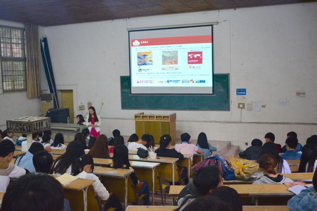 电教105进行演讲,讲座内容围绕主题“跨境电商行业分享以及步步高电商平台”。