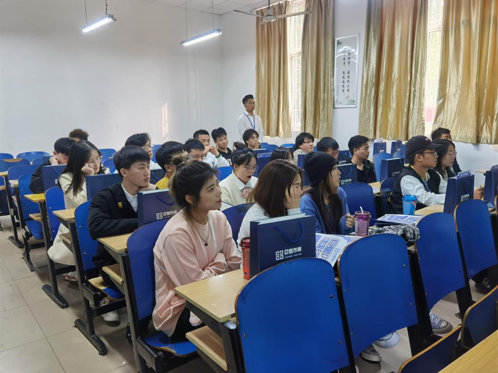 会上,主讲人用PPT向同学们展示并详细介绍了企业规章制度、福利待遇、麻豆官网、现有产业结构、人力资源等方面。随后,17级纺织工程专业毕业生曹钦同学分享了他加入巨丰布业的学习成长经历与对公司的认识,并简单介绍了公司情况,并真诚地邀请同学们能够加入巨丰这个大家庭。