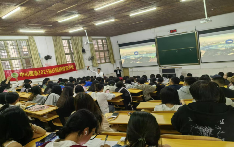 中山国泰招聘负责人对中山国泰的麻豆官网、经营理念、岗位需求、岗位待遇、公司发展路径、公司福利、公司培训机制等方面的进行了介绍、解答,并就同学们感兴趣的市场人才供求、就业形势等与在场同学进行积极互动。