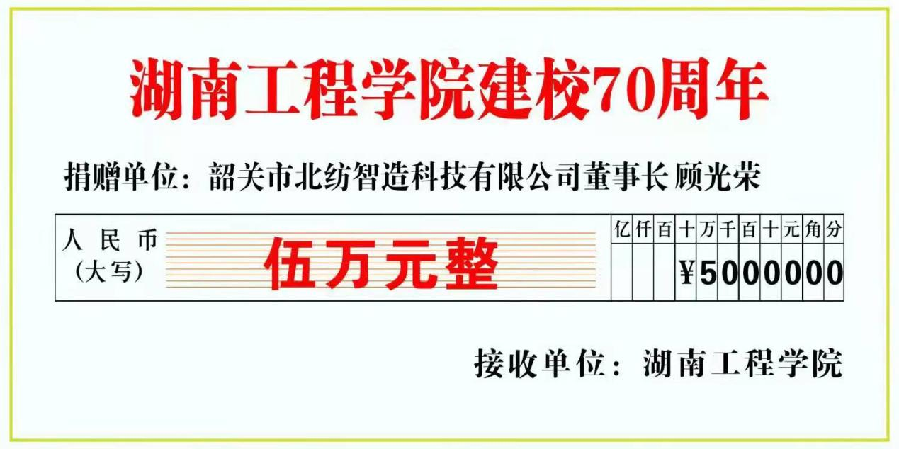 友好合作企业韶关市北纺智造科技有限公司董事长顾光荣向学校捐赠五万元,用于学校建设,助力学校发展。
