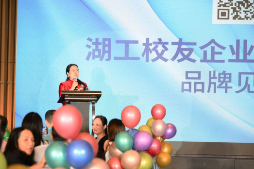 沐依湖的品牌发起人校友陈淑华向来宾们致辞,表达了她对母校深深的眷恋之情和从事服装研发的坚定决心,并号召所有服装产业链上的湖工校友们紧密团结,共创辉煌。