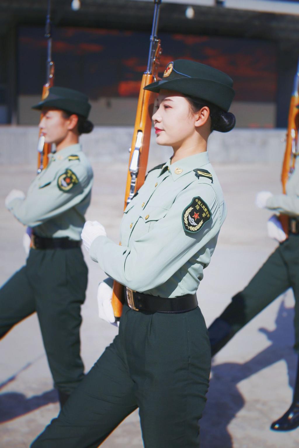 三个月过后的她,正式成为了仪仗队的一员,紧接着的是没日没夜的训练,她说:“训练仪仗队的队列动作,是基础的军姿训练,让我们在十二月的北京站出了满头大汗,简单的蹬翘 让我们蹬到小腿抽筋 ,踢腿半个小时不换腿 ,上枪磕到肘窝的淤青半个月不散 ,手腕酸到吃饭拿不起筷子 ,晚上睡觉都会因为白天的训练做梦踢腿踢醒”,正所谓“巾帼不让须眉,红颜更胜儿郎”,养兵千日,练兵千日,用兵千日”才是是女兵们的真实写照。