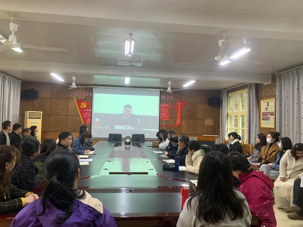 全体师生员工根据学校党史学习教育要求,在电教楼201会议室进行以“中国共产党为什么能”为主题的专题学习。