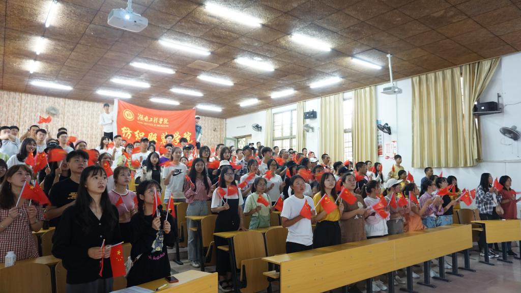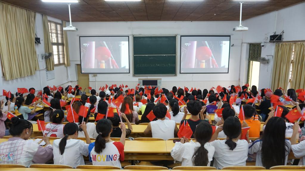 组织全院留校学生于在电教105集中收看国庆庆祝活动。