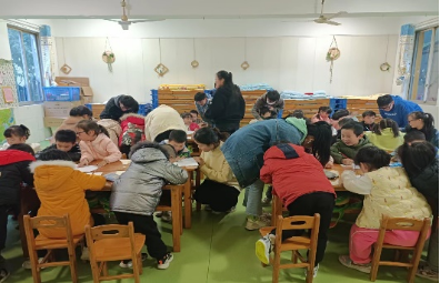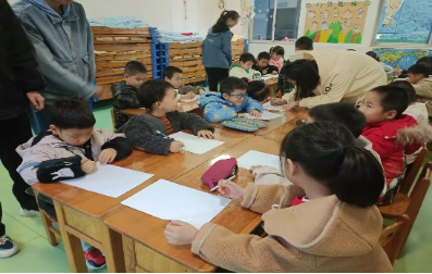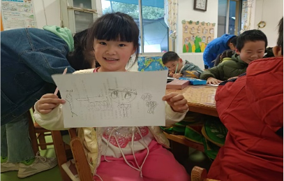 下午3点,在幼稚园园长的带领下,党员们来到了小朋友们的教室,迎面而来的便是小朋友纯真的笑脸和热情的欢迎声。首先,党员们带领小朋友学习歌曲并合唱《我和我的祖国》,虽然小朋友还是牙牙学语,却也是全程热情在线,跟着学生党员认真学唱,用他们幼稚的童声表达着对祖国的爱。学唱以后,党员同学向小朋友讲述《鸡毛信的故事》,“海娃几岁了啊?”“鸡毛信到底长什么样子啊?”,故事激发了小朋友的无限好奇和兴趣,踊跃提问与“海娃”相关问题。“小朋友们,你们眼中的海娃是什么样子的呢?我们一起把他画下来吧”。在党员同学的辅导下,小朋友纷纷拿出纸笔画出他们心目中的海娃形象图。活动最后,学生党员带领小朋友一起以国旗为主题制作了精美贺卡。