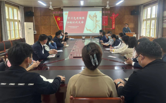 教工党支部在电教楼201会议室开展5月“一月一课一片一实践”主题党日活动。教工支部支书记何斌围绕“学习先进楷模 争做时代先锋”主题带领全体教工党员进行学习。
