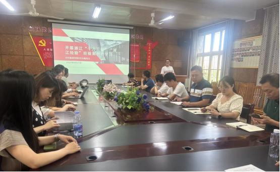 活动第一项内容——深入学习习近平总书记对“千万工程”、“浦江经验”的两个案例的重要批示精神。何斌对“千村示范、万村整治”工程进行介绍,梳理了“千万工程”的主要做法和经验启示,并强调要学习运用浙江“千万工程”经验和“浦江经验”,落实学校学院的要求,学思用贯通、知信行统一,提升政治能力、思维能力、实践能力,推动主题教育走深走实,切实把学习成效转化为解决问题、推动发展的实际行动。
